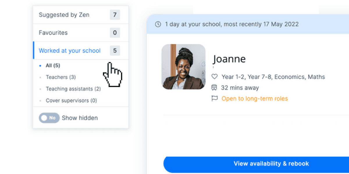 These are candidates that you've previously booked through Zen. Here you can revisit profiles, rebook Teachers and TAs, leave candidate reviews and more.